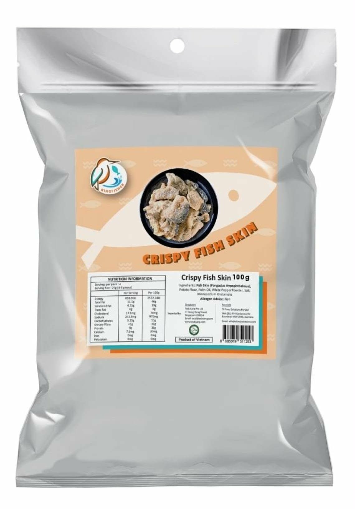 Kingfisher Crispy Fish Skin Snack delivers an irresistible crunch with rich, savoury flavour in every bite. Lightly seasoned and perfectly fried, it’s a crowd-favourite snack that’s great for sharing, entertaining, or satisfying cravings anytime. A bold, crunchy treat from Kingfisher that keeps you reaching for more.