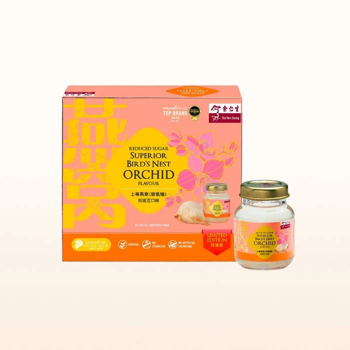 Eu Yan Sang Limited Edition Superior Bird’s Nest Orchid Flavour (Reduced Sugar) is crafted with meticulous care and premium ingredients, this exclusive offering stands apart with its commitment to authenticity and quality. What sets it apart is its unwavering dedication to natural goodness – no artifcial colouring, no stabilizers. Instead, its delightful Orchid flavour is derived from pure, natural sources, ensuring an unparalleled taste experience that remains true to nature.